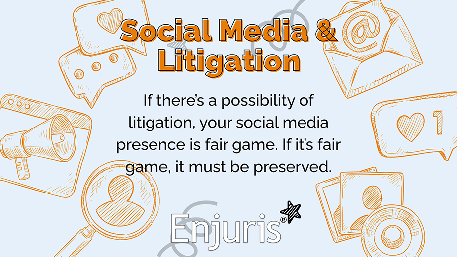 - Preserve everything. Don’t delete posts, photos, videos, comments, or messages. Don’t deactivate or delete accounts. If you have an attorney, inform them of your social media accounts and follow their guidance on preservation. A litigation hold letter that covers your ESI (including social media) is standard practice in legal representation today.